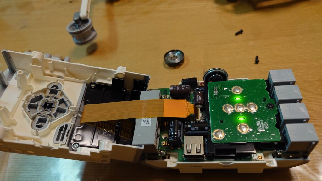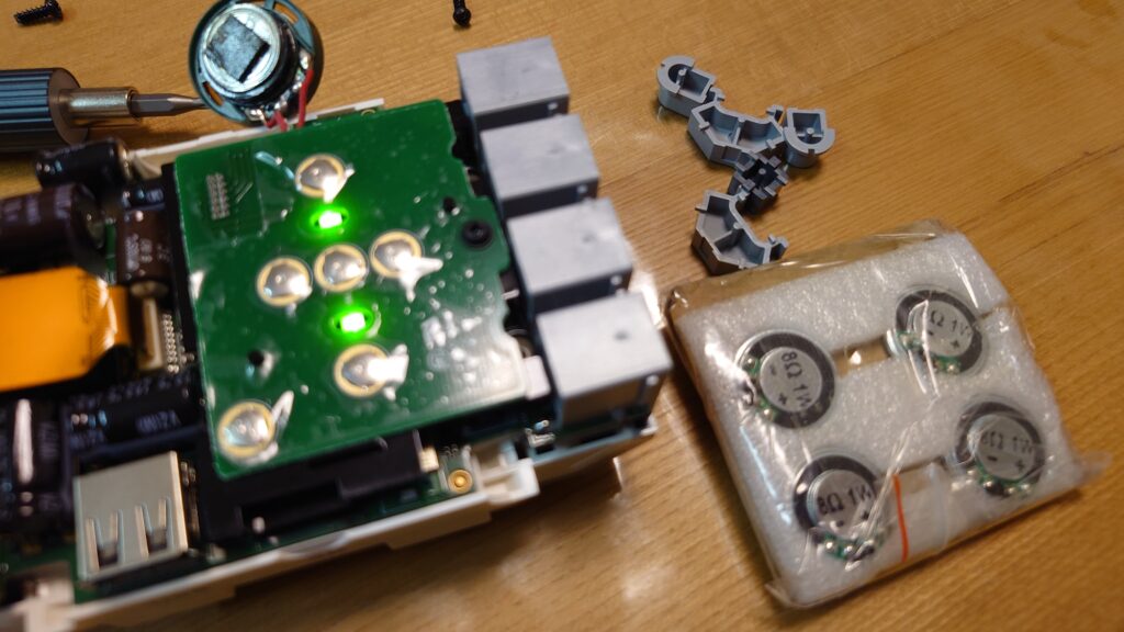 送られてきた代わりのスピーカー。分解すると操作キーがバラバラ落ちてきて面倒。なくさないように。