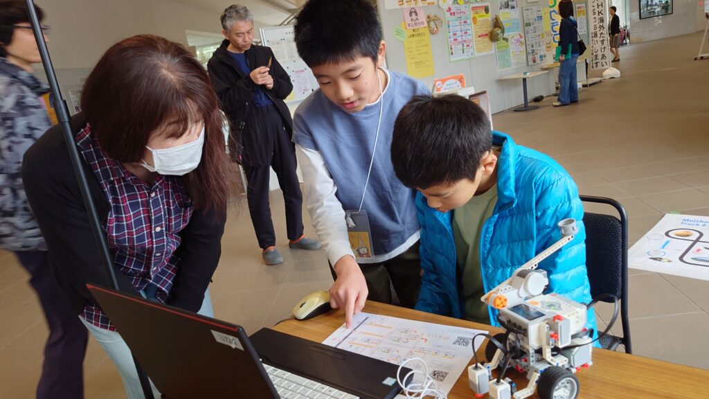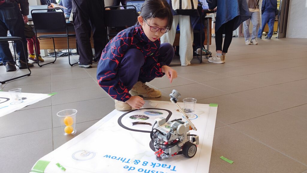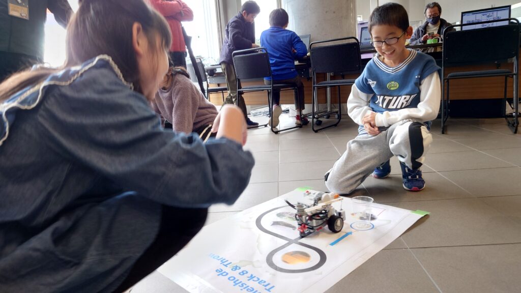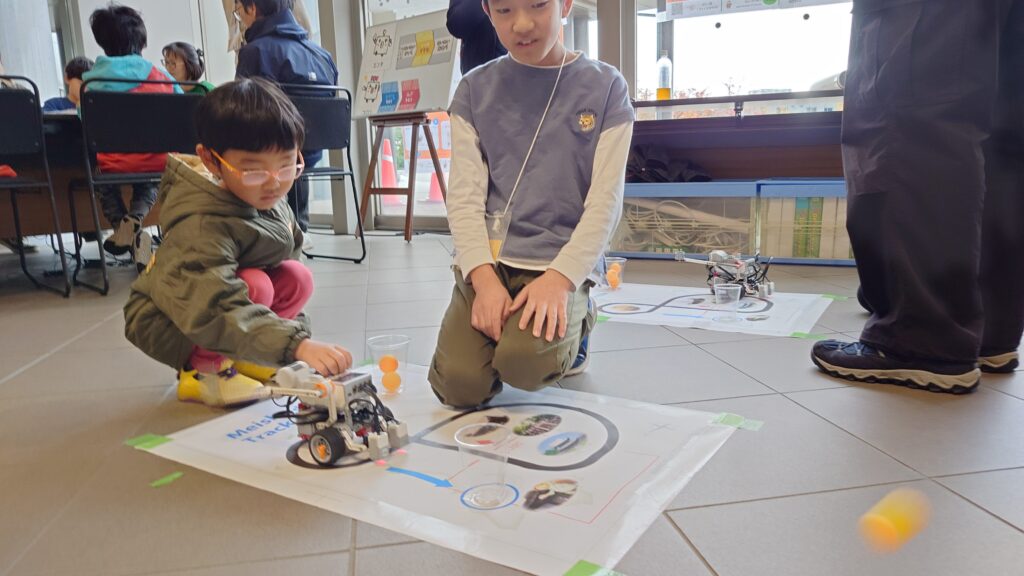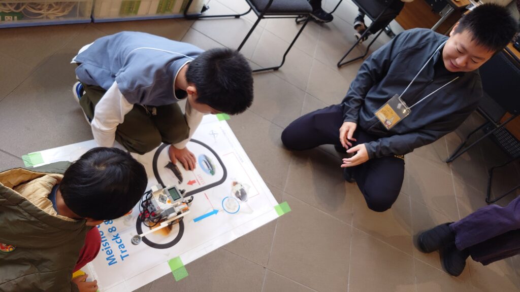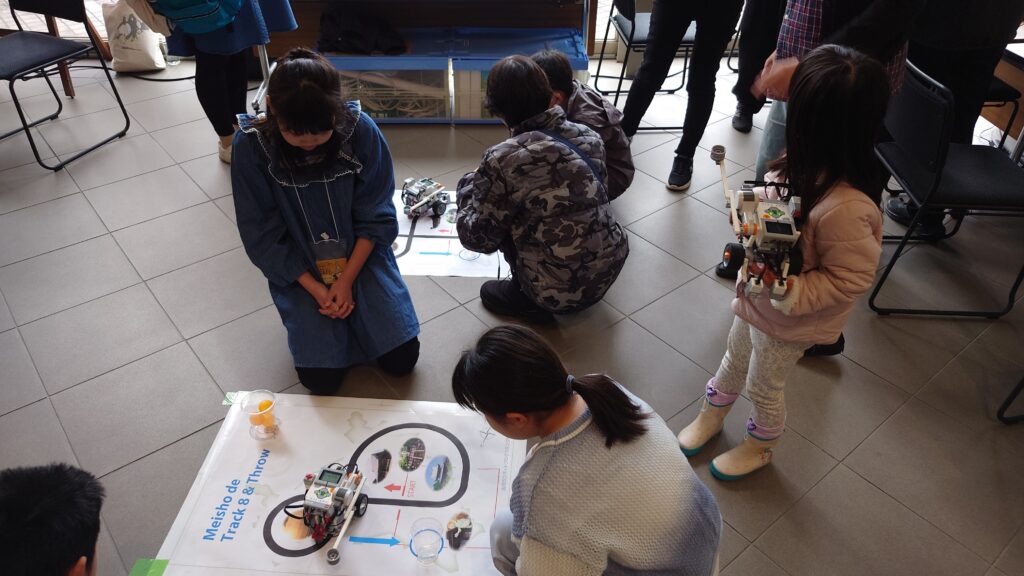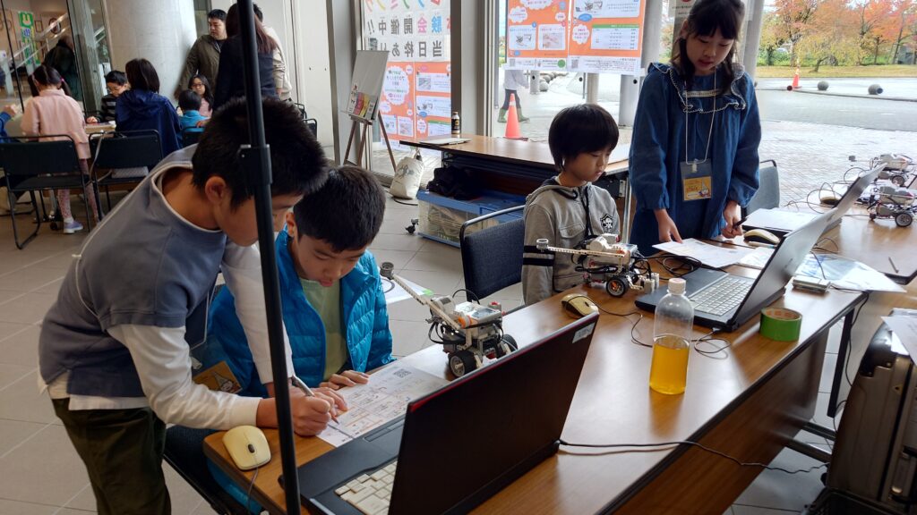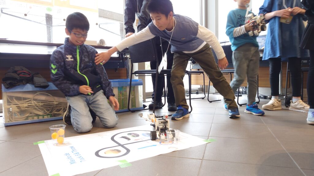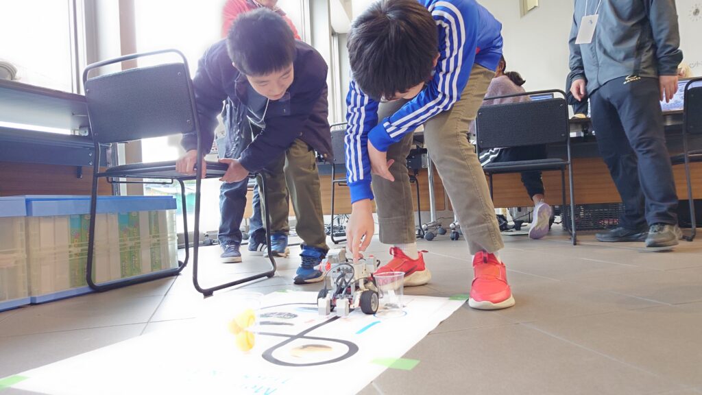1組30分という短時間なので、基本のプログラムはPCにあるものを入れてもらい、さらに速くライントレースし、さらに確実にシュートを決められるように改良するという方法で行いました。